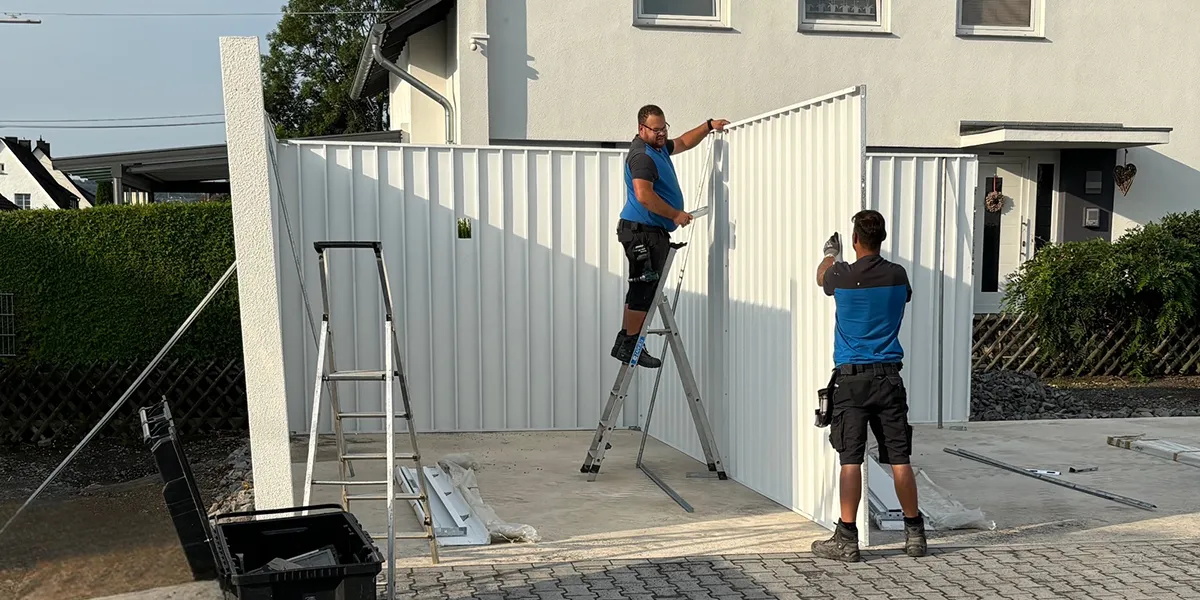 Die Lieferung der Fertiggarage erfolgt in Einzelelementen, dazu nutzen wir unseren eigenen Fuhrpark. Der Aufbau der Garage erfolgt durch Fachpersonal, die Aufbaudauer beträgt max. 1 Arbeitstag. Nach dem Aufbau erfolgt eine Funktionskontrolle und eine protokollierte Abnahme, die Sie zusammen mit unserem Team durchführen. Dabei können noch offene Fragen geklärt werden.