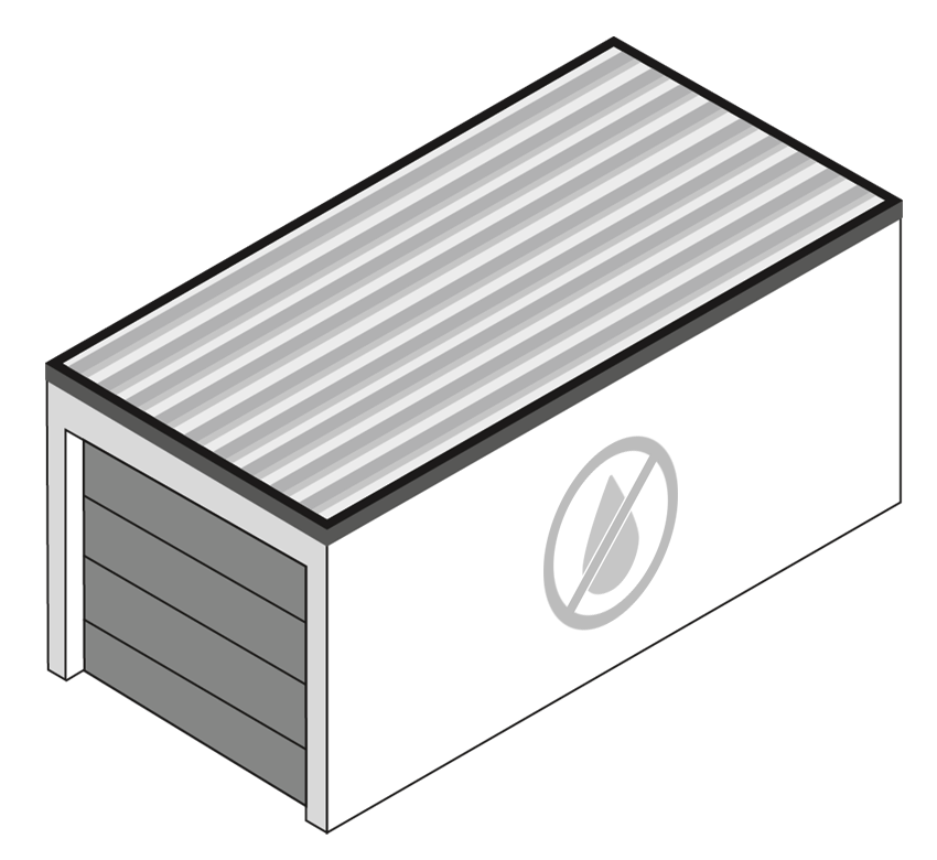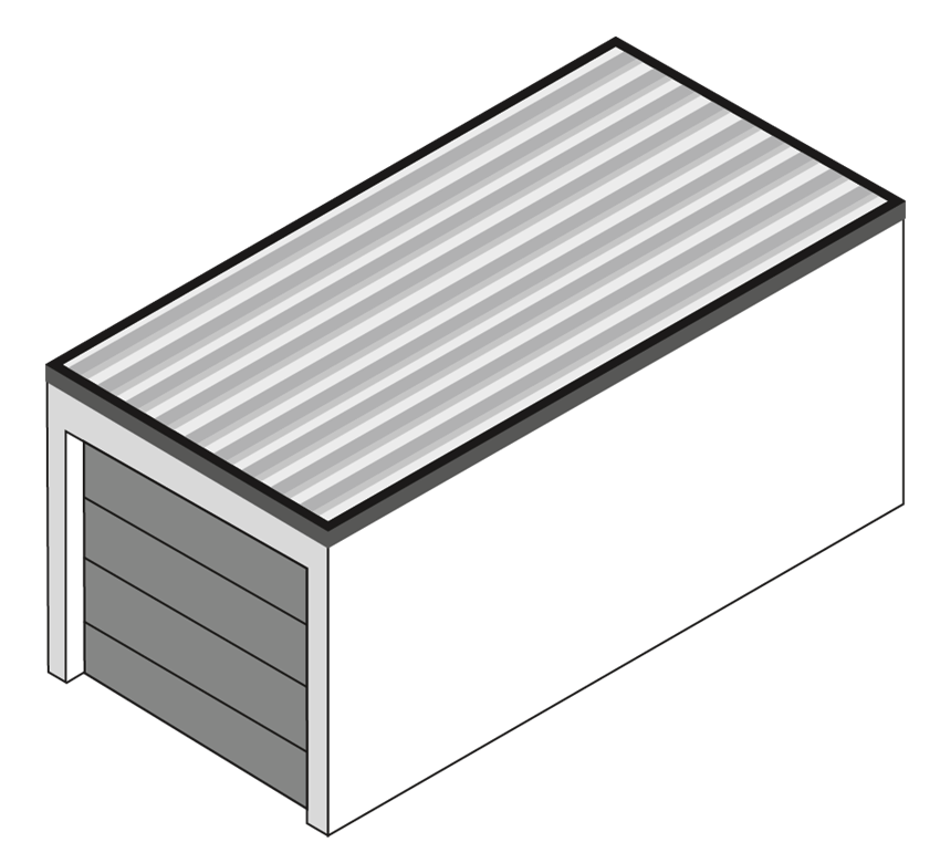 Bei der Ausführung des Garagendachs stehen neben der Standardversion mit Trapezblech das ISO-Dach mit Wärmedämmung sowie eine Vorbereitung zur Dachbegrünung zur Auswahl. Bei der Dachbegrünung wird der Dachaufsatz als auch die Dachlast erhöht.