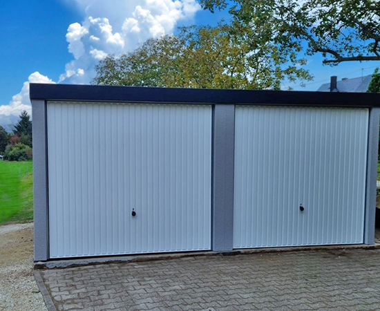 Bei Bauprojekten in Hochwassergebieten gelten besondere Anforderungen, denen unsere Stahlgaragen bis zu einer gewissen Wasserhöhe absolut genügen. Bei diesem Projekt in der südlichen Eifel wurde die bisherige Garage in unregelmäßigen Abständen bis zu 40 cm hoch überschwemmt. Nachdem wir den Auftrag für eine neue Garage erhalten haben, wurde die alte vorhandene Garage von uns genau ausgemessen und die neue Doppelgarage auf das gleiche Maß angefertigt. Somit wurden die bisherigen Fundamente und die Pflasterung noch weiter benutzt und es entstanden keine weiteren Kosten für ein neues Fundament.