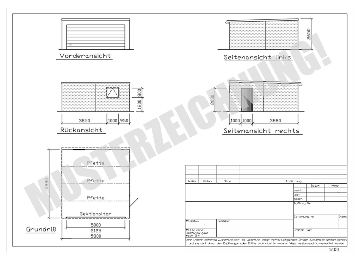 - Bemaßte Zeichnung der Garage