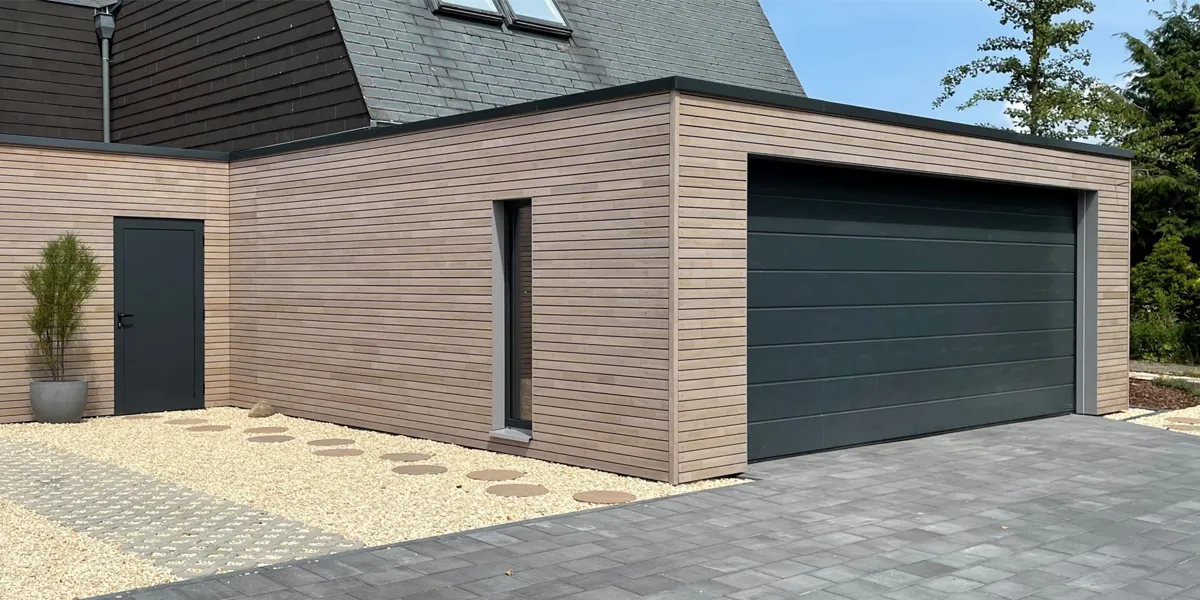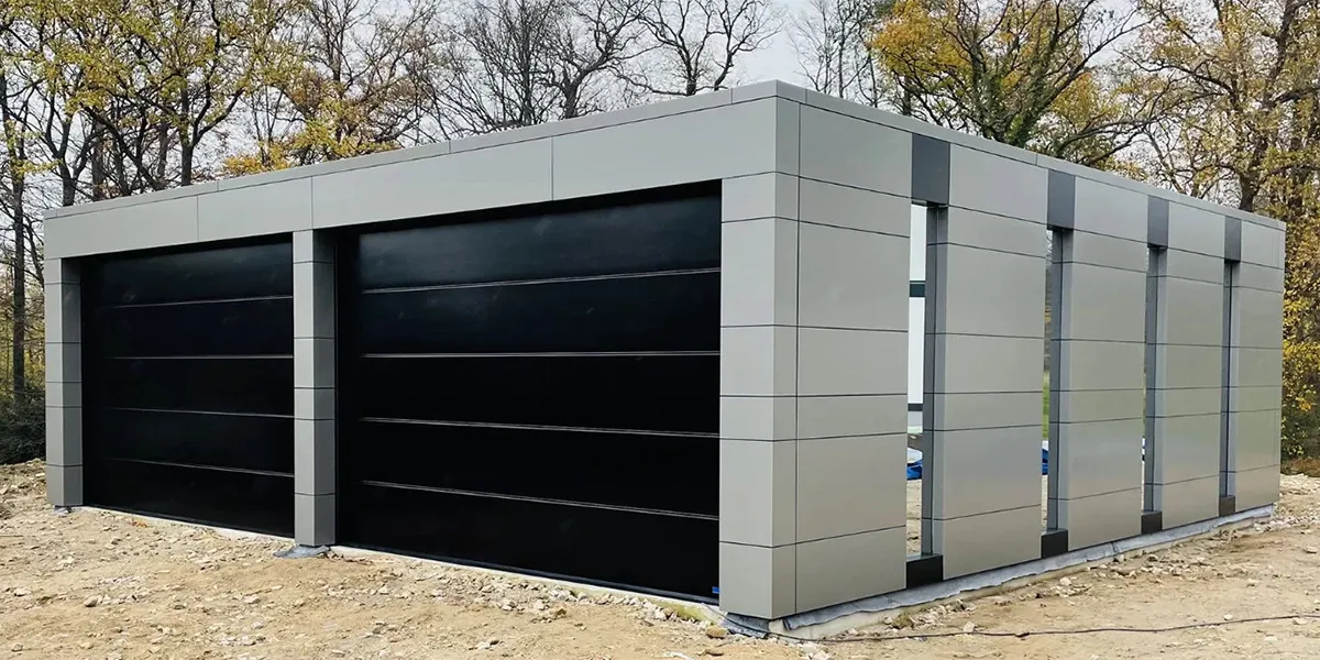 Die Garagen in Holzständerbauweise ähneln im Aussehen erstmal unseren beliebten Stahlgaragen. Wem aber das Design der Standardgaragen zu langweilig ist, findet bei den KLIMA+ Garagen eine interessante Alternative. Mit der Holzständerbauweise ist es möglich, auch besondere Formen zu erstellen oder außergewöhnliche Kundenwünsche umzusetzen. Dazu zählen beispielsweise ein formschönes Satteldach, eine Beplankung der Garage mit Rhombusleisten oder Fassaden in Rasteroptik mit Glas-Elementen.