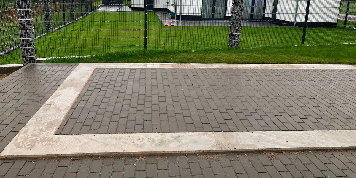 Ein umlaufender Fundamentstreifen, der Innenbereich des Fundaments wird zumeist gepflastert. - Fundamentplatte
